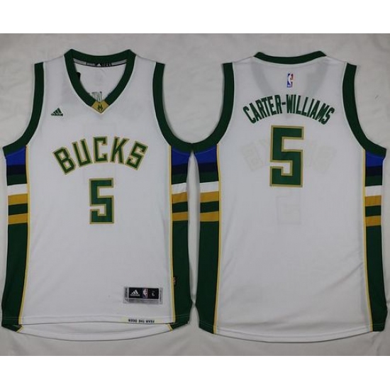 >Bucks #5 Michael Carter-Williams White Stitched NBA Jersey
