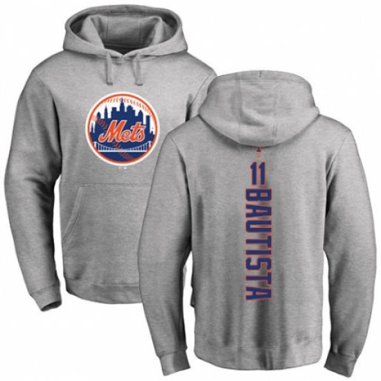 MLB Nike New York Mets #11 Jose Bautista Ash Backer Pullover Hoodie