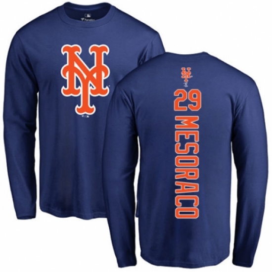 >MLB Nike New York Mets #29 Devin Mesoraco Royal Blue Backer Long Sleeve T-Shirt