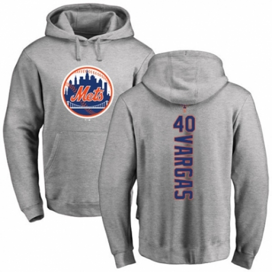MLB Nike New York Mets #40 Jason Vargas Ash Backer Pullover Hoodie