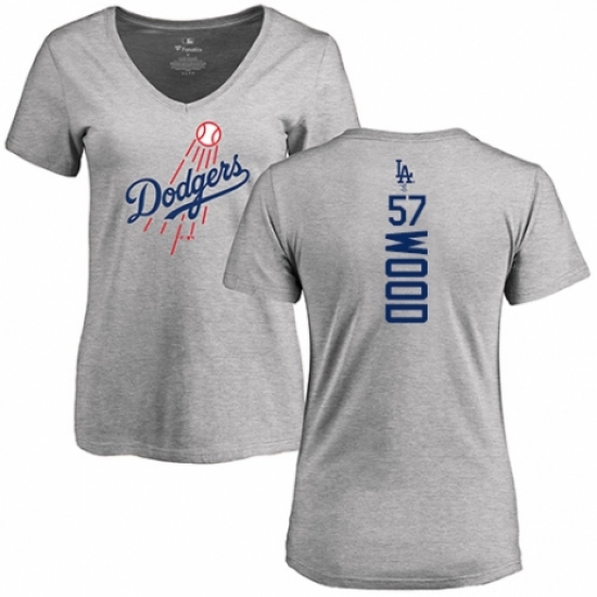 >MLB Women's Nike Los Angeles Dodgers #57 Alex Wood Ash Backer T-Shirt