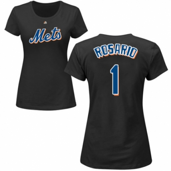MLB Women's Nike New York Mets #1 Amed Rosario Black Name & Number T-Shirt