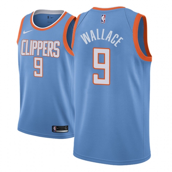 >Men NBA 2018-19 Los Angeles Clippers #9 Tyrone WallaceCity Edition Light Blue Jersey