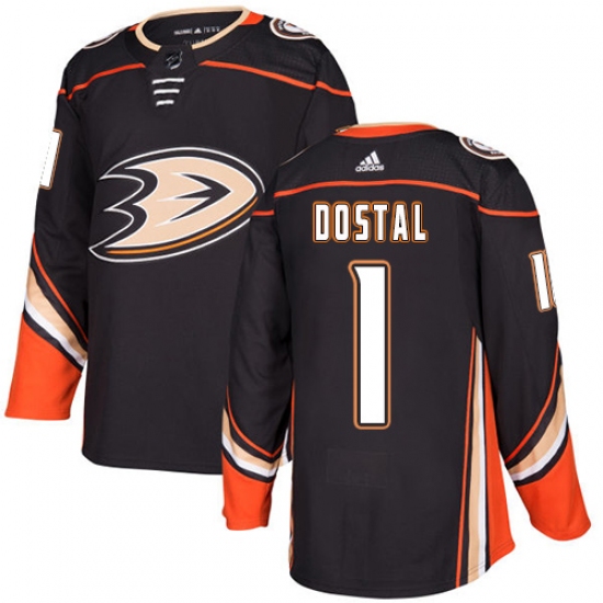 Men's Adidas Anaheim Ducks #1 Lukas Dostal Authentic Black Home NHL Jersey