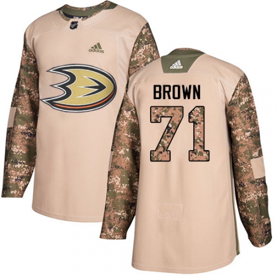 >Men's Adidas Anaheim Ducks #71 J.T. Brown Authentic Camo Veterans Day Practice NHL Jersey