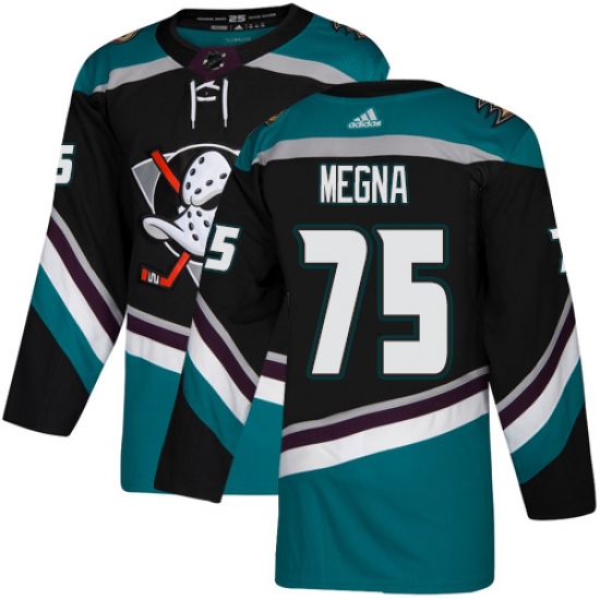 >Men's Adidas Anaheim Ducks #75 Jaycob Megna Authentic Black Teal Third NHL Jersey