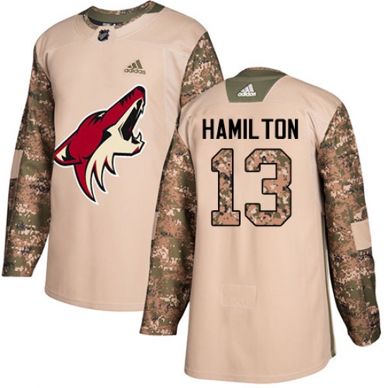 >Men's Adidas Arizona Coyotes #13 Freddie Hamilton Authentic Camo Veterans Day Practice NHL Jersey