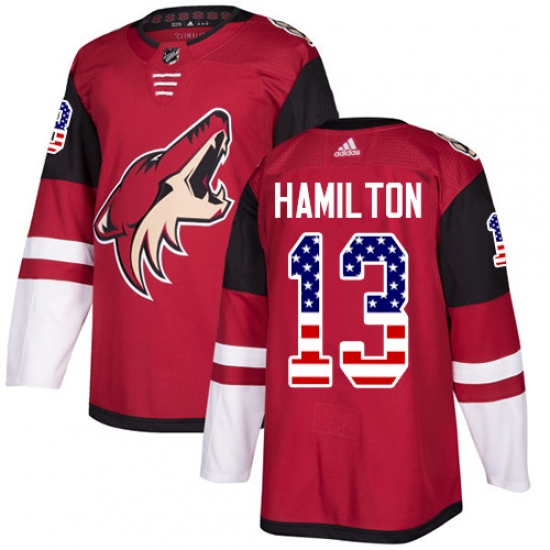 >Men's Adidas Arizona Coyotes #13 Freddie Hamilton Authentic Red USA Flag Fashion NHL Jersey