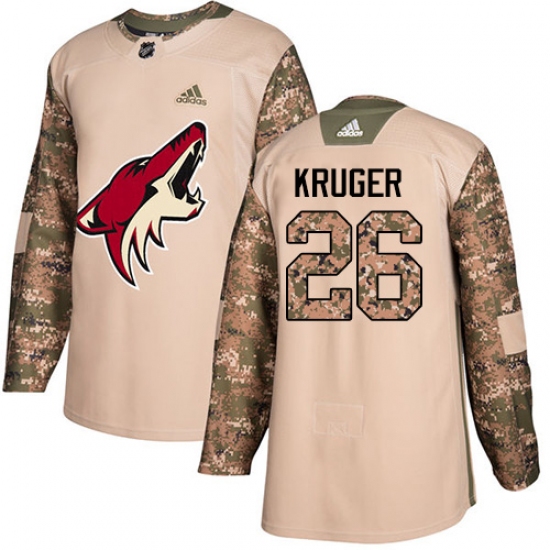 >Men's Adidas Arizona Coyotes #26 Marcus Kruger Authentic Camo Veterans Day Practice NHL Jersey