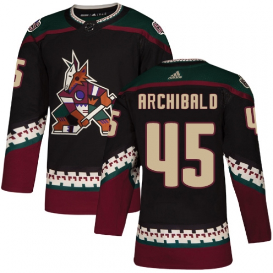 Men's Adidas Arizona Coyotes #45 Josh Archibald Authentic Black 1917-2017 100th Anniversary NHL Jersey