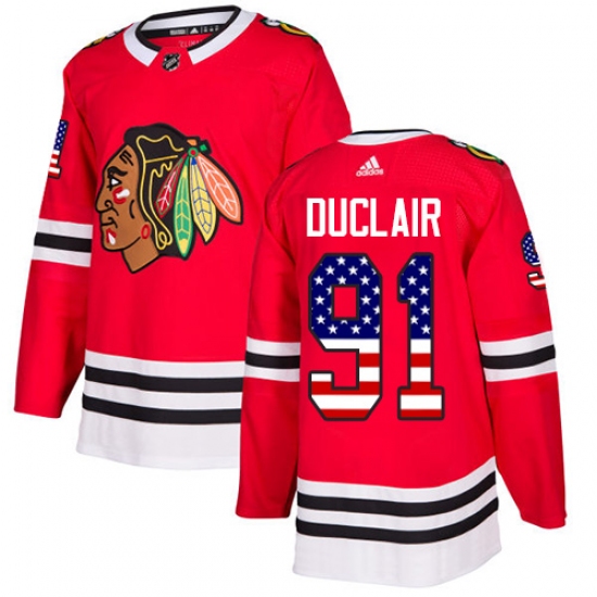 >Men's Adidas Chicago Blackhawks #91 Anthony Duclair Authentic Red USA Flag Fashion NHL Jersey