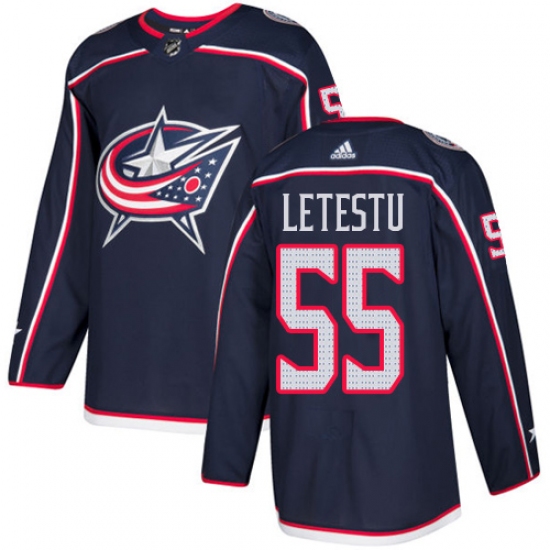 >Men's Adidas Columbus Blue Jackets #55 Mark Letestu Authentic Navy Blue Home NHL Jersey