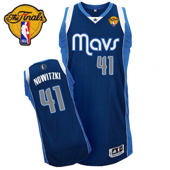 Men's Adidas Dallas Mavericks #41 Dirk Nowitzki Authentic Navy Blue Alternate Finals Patch NBA Jersey