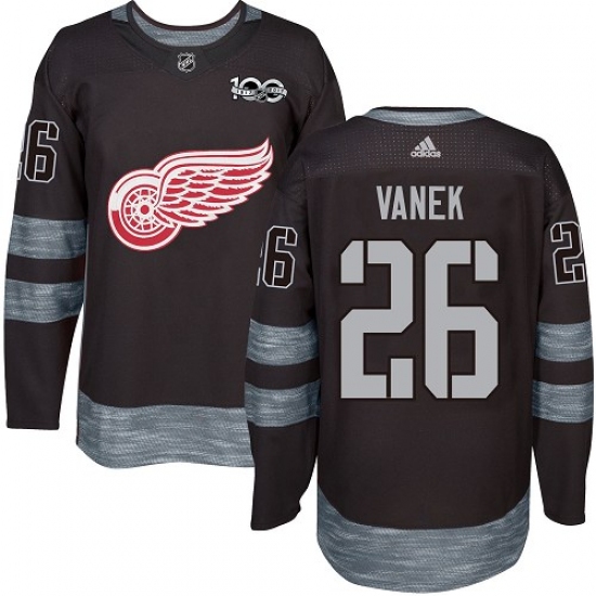 Men's Adidas Detroit Red Wings #26 Thomas Vanek Authentic Black 1917-2017 100th Anniversary NHL Jersey