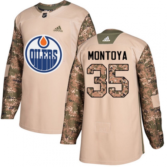 >Men's Adidas Edmonton Oilers #35 Al Montoya Authentic Camo Veterans Day Practice NHL Jersey