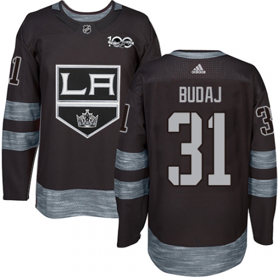 Men's Adidas Los Angeles Kings #31 Peter Budaj Authentic Black 1917-2017 100th Anniversary NHL Jersey