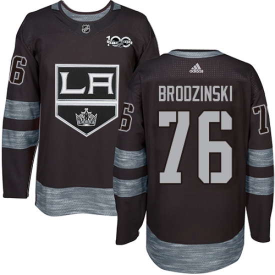 Men's Adidas Los Angeles Kings #76 Jonny Brodzinski Authentic Black 1917-2017 100th Anniversary NHL Jersey