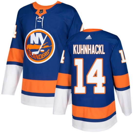 >Men's Adidas New York Islanders #14 Tom Kuhnhackl Premier Royal Blue Home NHL Jersey