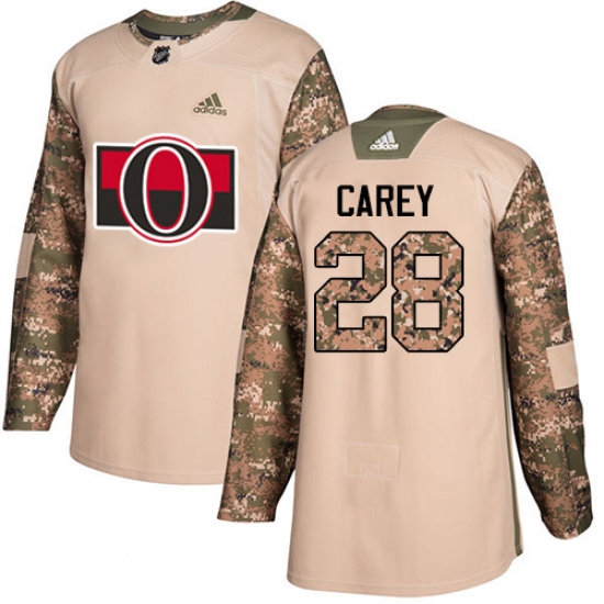 >Men's Adidas Ottawa Senators #28 Paul Carey Authentic Camo Veterans Day Practice NHL Jersey