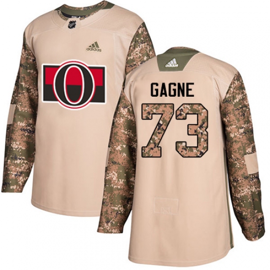 >Men's Adidas Ottawa Senators #73 Gabriel Gagne Authentic Camo Veterans Day Practice NHL Jersey