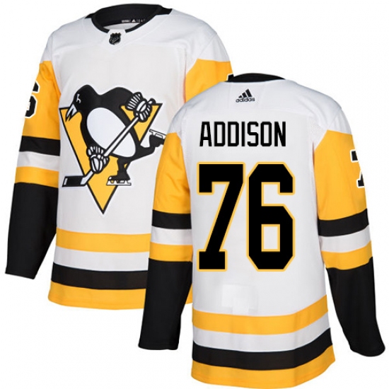 >Men's Adidas Pittsburgh Penguins #76 Calen Addison Authentic White Away NHL Jersey