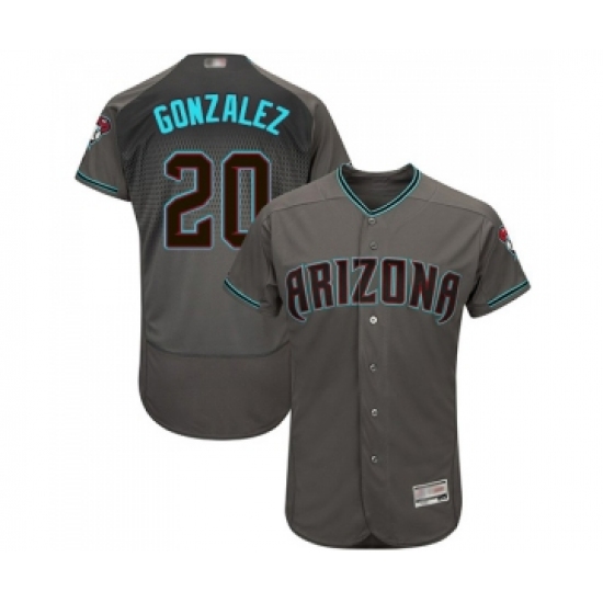 >Men's Arizona Diamondbacks #20 Luis Gonzalez Gray Teal Alternate Authentic Collection Flex Base Baseball Jersey