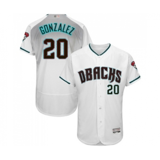 >Men's Arizona Diamondbacks #20 Luis Gonzalez White Teal Alternate Authentic Collection Flex Base Baseball Jersey