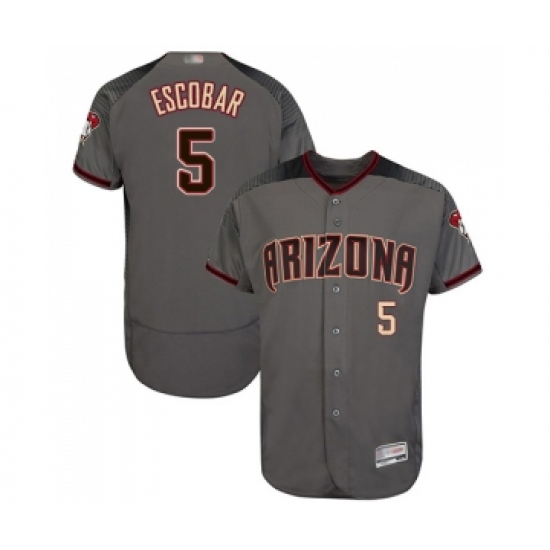>Men's Arizona Diamondbacks #5 Eduardo Escobar Grey Road Authentic Collection Flex Base Baseball Jersey
