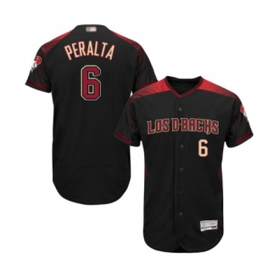 >Men's Arizona Diamondbacks #6 David Peralta Black Alternate Authentic Collection Flex Base Baseball Jersey
