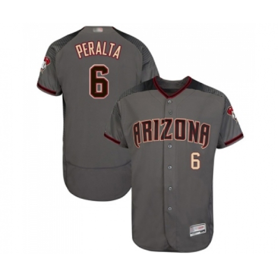 >Men's Arizona Diamondbacks #6 David Peralta Grey Road Authentic Collection Flex Base Baseball Jersey