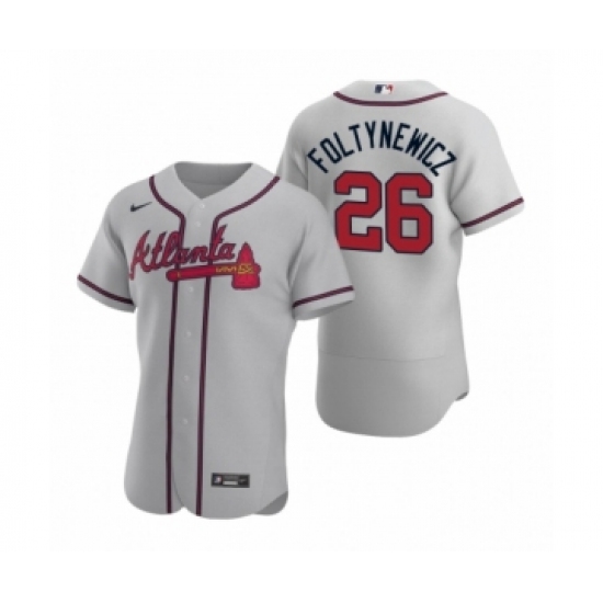 >Men's Atlanta Braves #26 Mike Foltynewicz Nike Gray Authentic 2020 Road Jersey