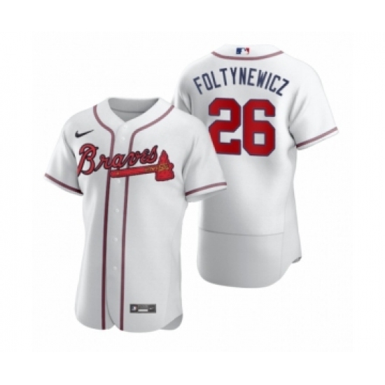 >Men's Atlanta Braves #26 Mike Foltynewicz Nike White 2020 Authentic Jersey