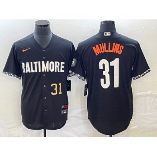 Men's Baltimore Orioles #31 Cedric Mullins Black 2023 City Connect Cool Base Stitched Jersey 1