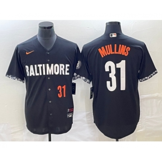 >Men's Baltimore Orioles #31 Cedric Mullins Number Black 2023 City Connect Cool Base Stitched Jersey