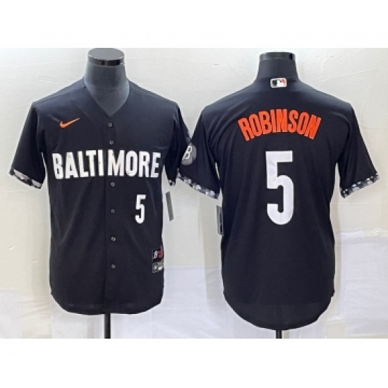 Men's Baltimore Orioles #5 Brooks Robinson Number Black 2023 City Connect Cool Base Stitched Jersey 2