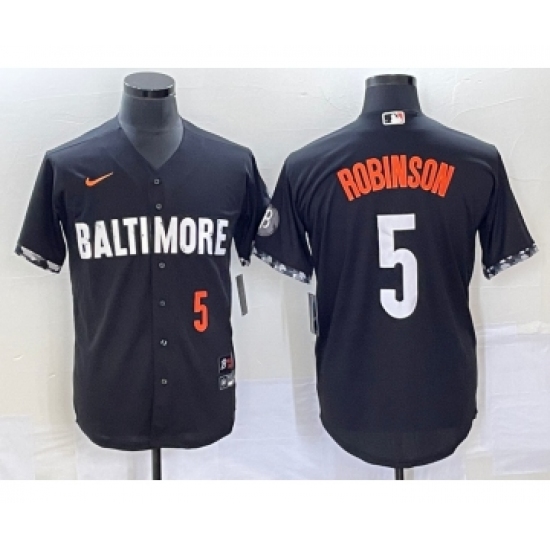 Men's Baltimore Orioles #5 Brooks Robinson Number Black 2023 City Connect Cool Base Stitched Jersey 1