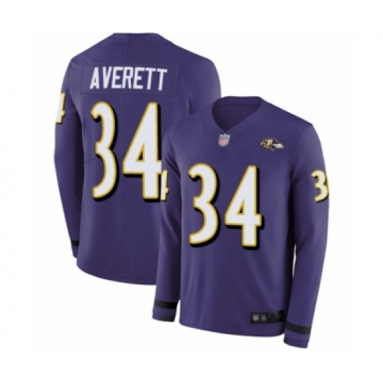 Men's Baltimore Ravens #34 Anthony Averett Limited Purple Therma Long Sleeve Football Jersey