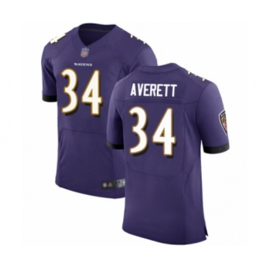 Men's Baltimore Ravens #34 Anthony Averett Purple Team Color Vapor Untouchable Elite Player Football Jersey