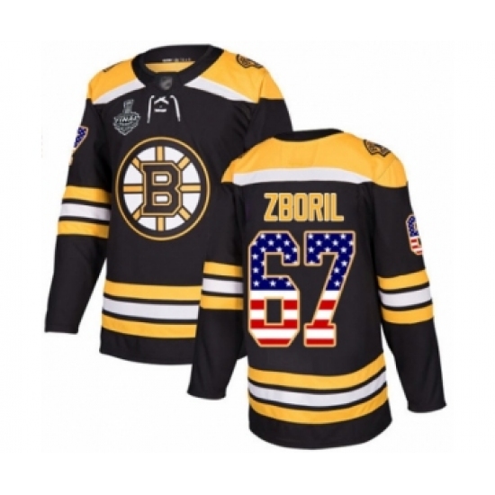 >Men's Boston Bruins #67 Jakub Zboril Authentic Black USA Flag Fashion 2019 Stanley Cup Final Bound Hockey Jersey