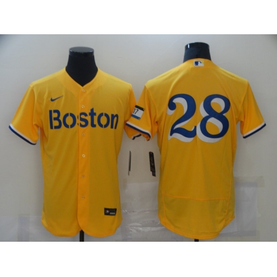 >Men's Boston Red Sox #28 J.D. Martinez Nike Gold-Light Blue 2021 City Connect Jersey