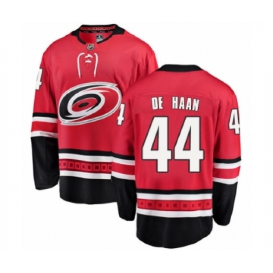 Men's Carolina Hurricanes #44 Calvin De Haan Authentic Red Home Fanatics Branded Breakaway NHL Jersey