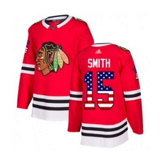 Men's Chicago Blackhawks #15 Zack Smith Authentic Red USA Flag Fashion Hockey Jersey