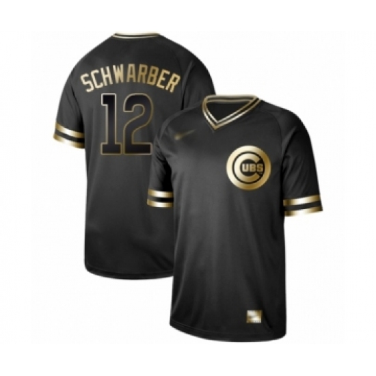 >Men's Chicago Cubs #12 Kyle Schwarber Authentic Black Gold Fashion Baseball Jersey