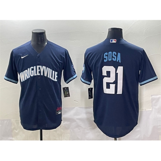 Men's Chicago Cubs #21 Sammy Sosa Navy City Connect Stitched Baseball Jersey