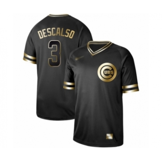 Men's Chicago Cubs #3 Daniel Descalso Authentic Black Gold Fashion Baseball Jersey