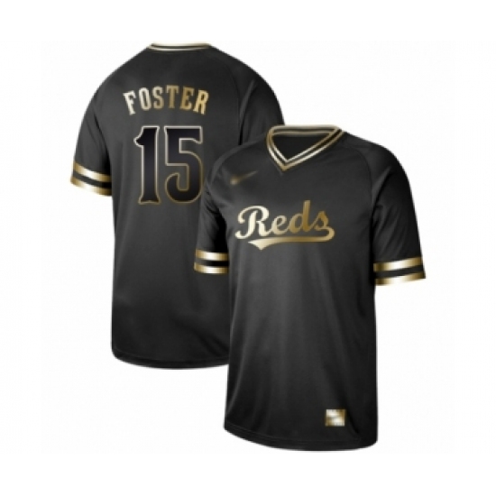 Men's Cincinnati Reds #15 George Foster Authentic Black Gold Fashion Baseball Jersey