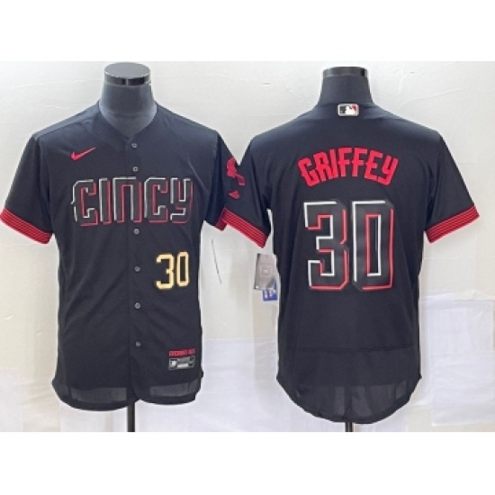Men's Cincinnati Reds #30 Ken Griffey Jr Black 2023 City Connect Flex Base Stitched Jersey 1