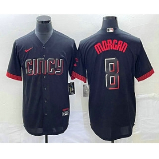 Men's Cincinnati Reds #8 Joe Morgan Black 2023 City Connect Cool Base Stitched Jersey 1