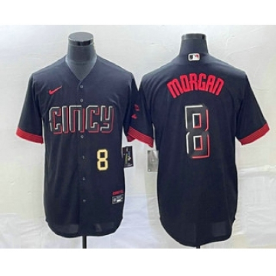 Men's Cincinnati Reds #8 Joe Morgan Black 2023 City Connect Cool Base Stitched Jersey 1