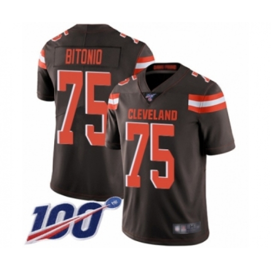 >Men's Cleveland Browns #75 Joel Bitonio Brown Team Color Vapor Untouchable Limited Player 100th Season Football Jersey